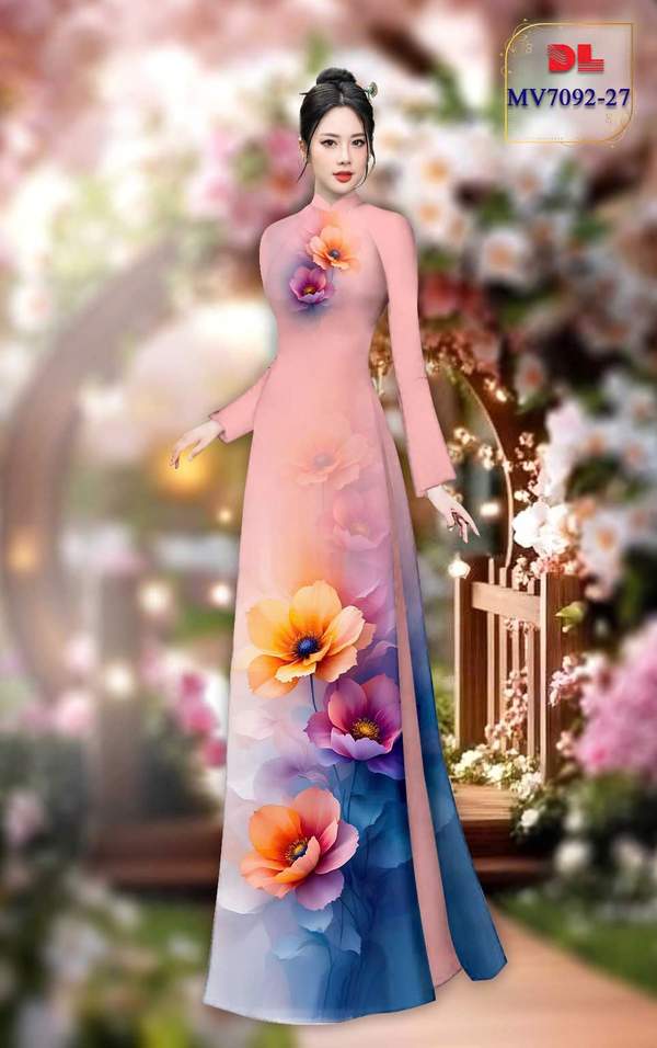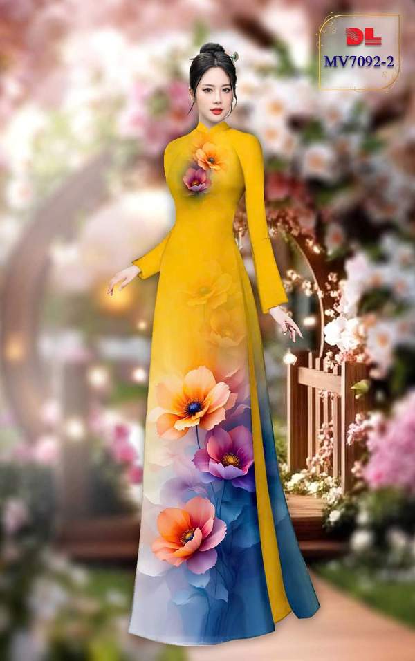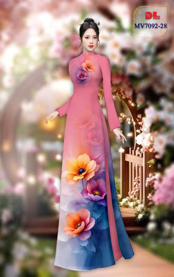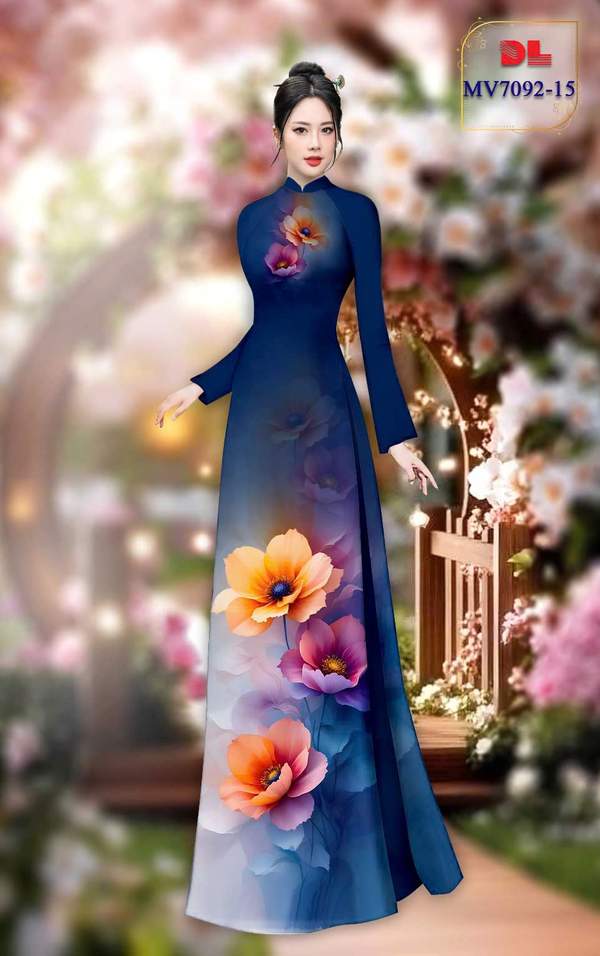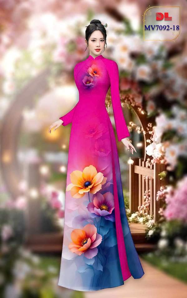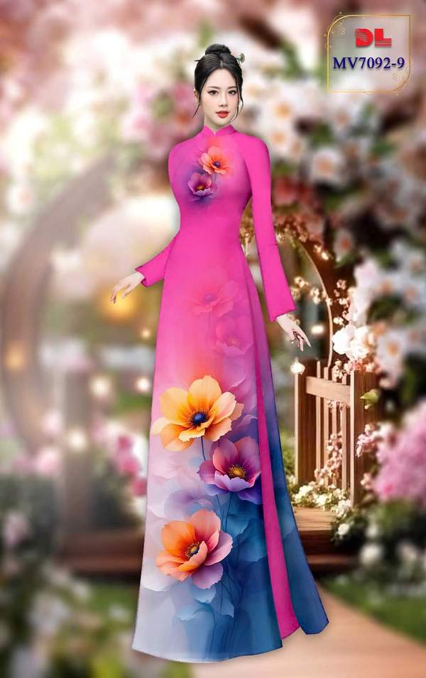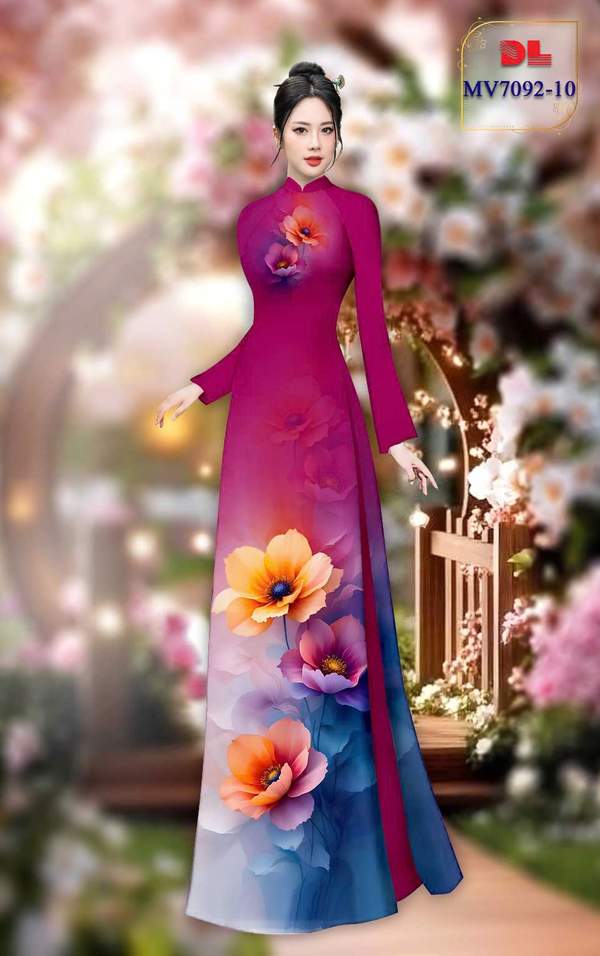 Vải Áo Dài Hoa In 3D vừa thiết kế tháng này AD MV7092 của vải áo dài My My