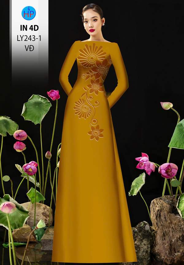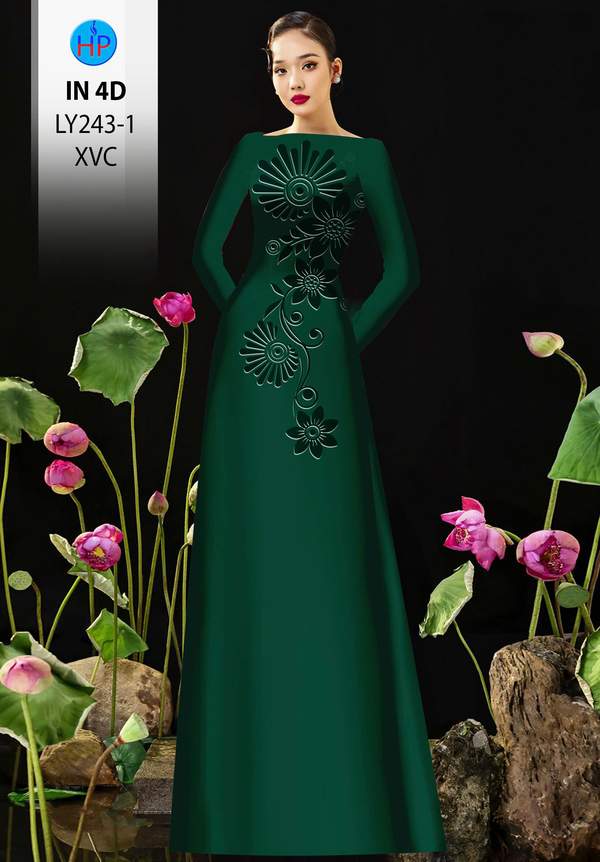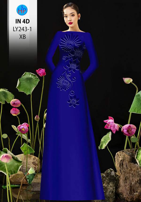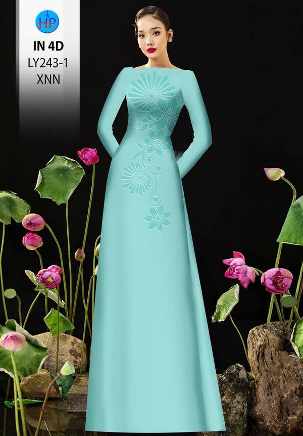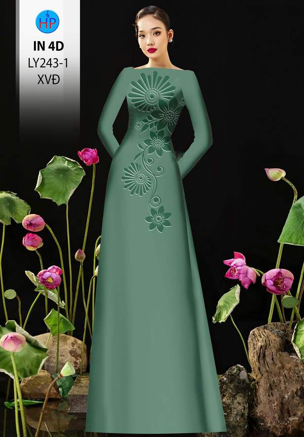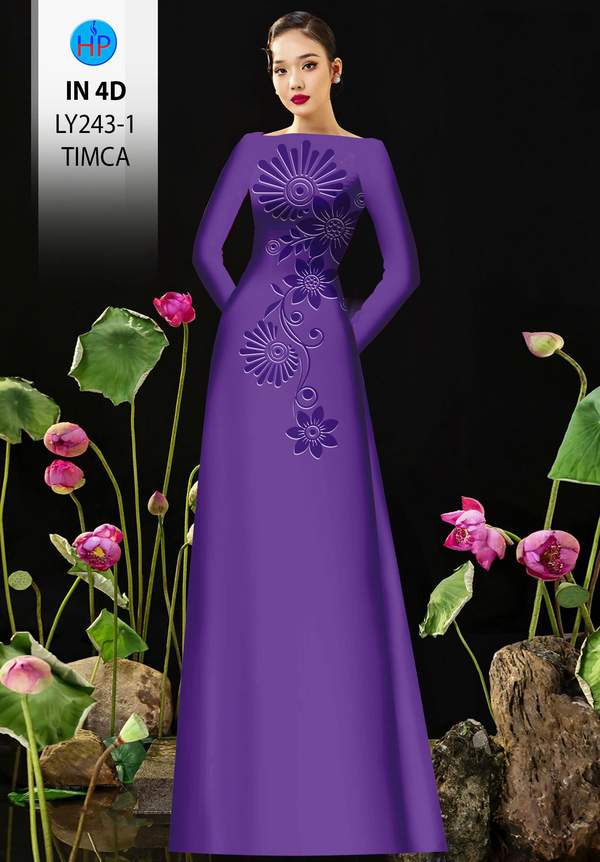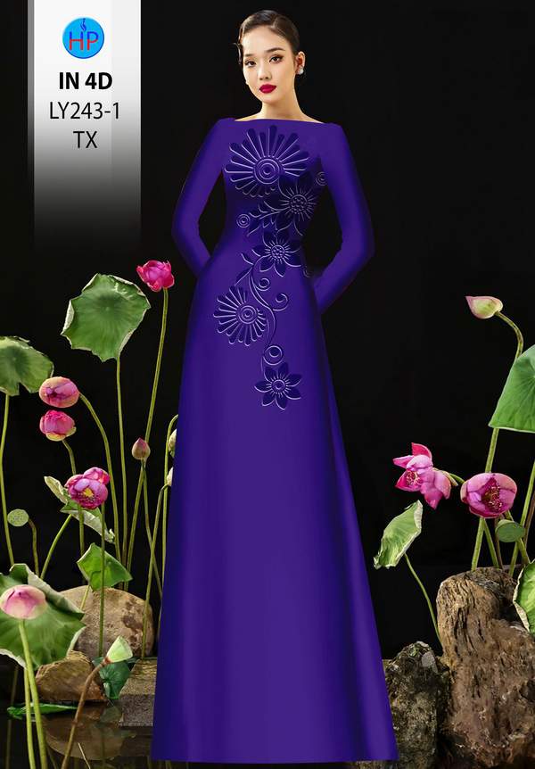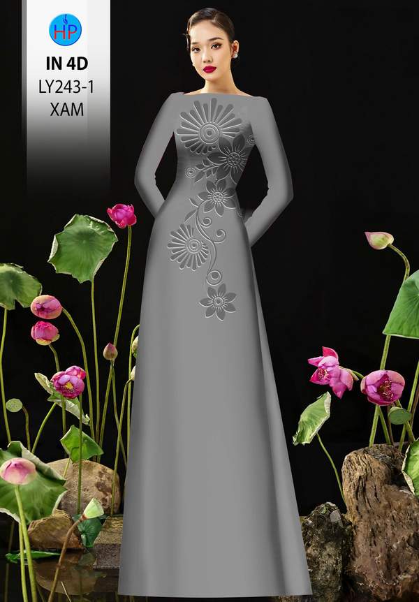 Vải Áo Dài Hoa In Chìm 4D xem nhiều nhất hiện nay AD LY243-1 duyên dáng