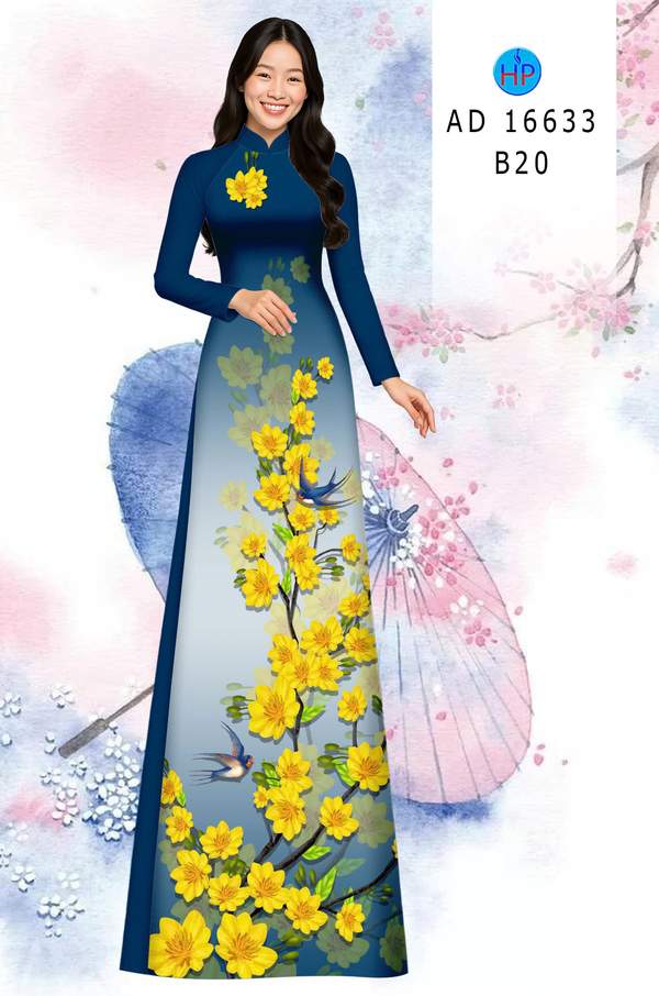 Vải Áo Dài Hoa Mai mới ra hiện nay AD 16633 của vải áo dài My My