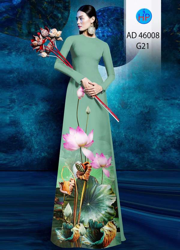 Vải Áo Dài Hoa Sen nhẹ nhàng tháng này AD 46008 của vải áo dài My My