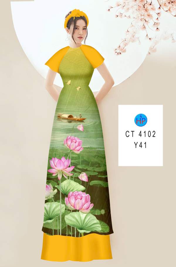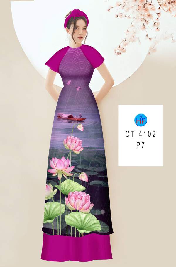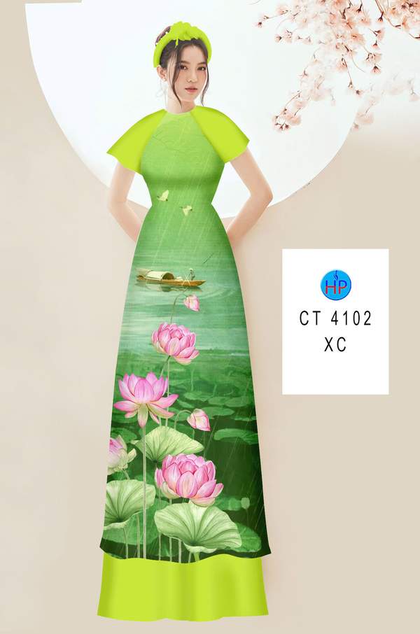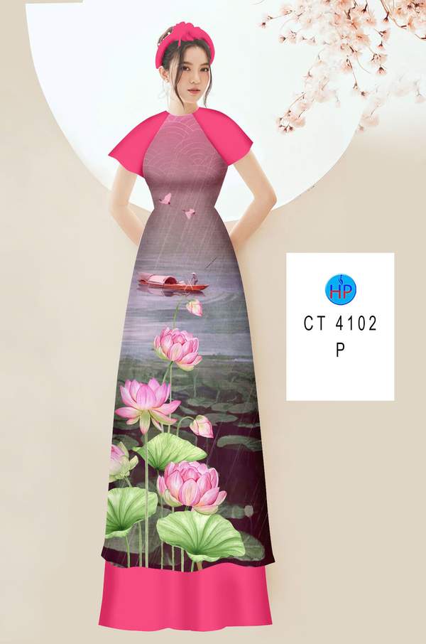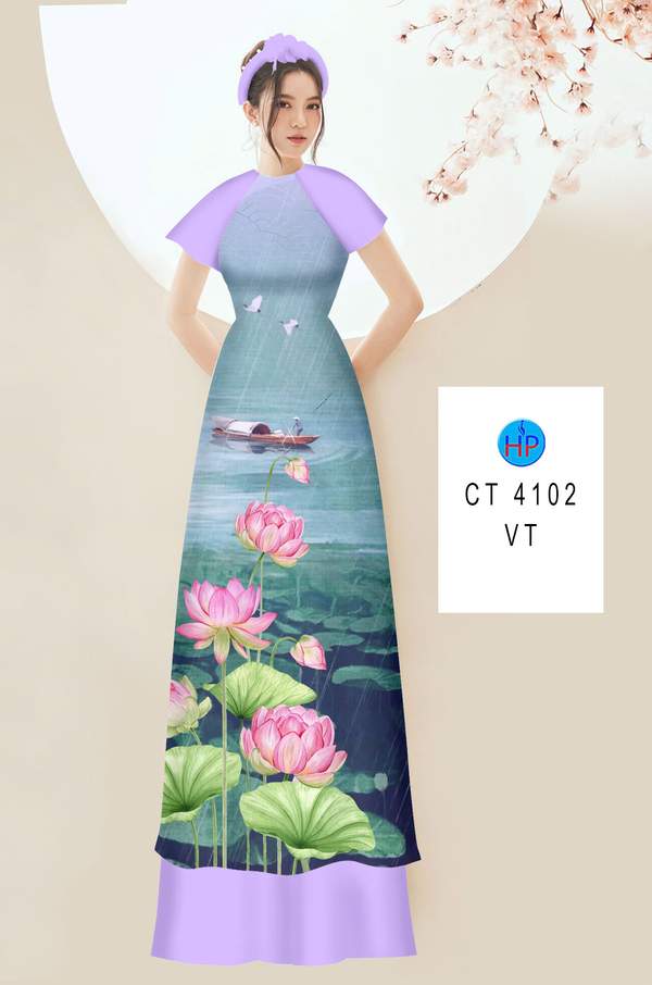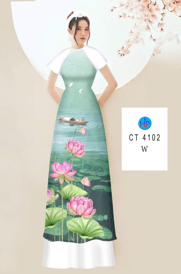 Vải Áo Dài Hoa Sen nhiều kiểu mới tháng này AD CT4102 duyên dáng