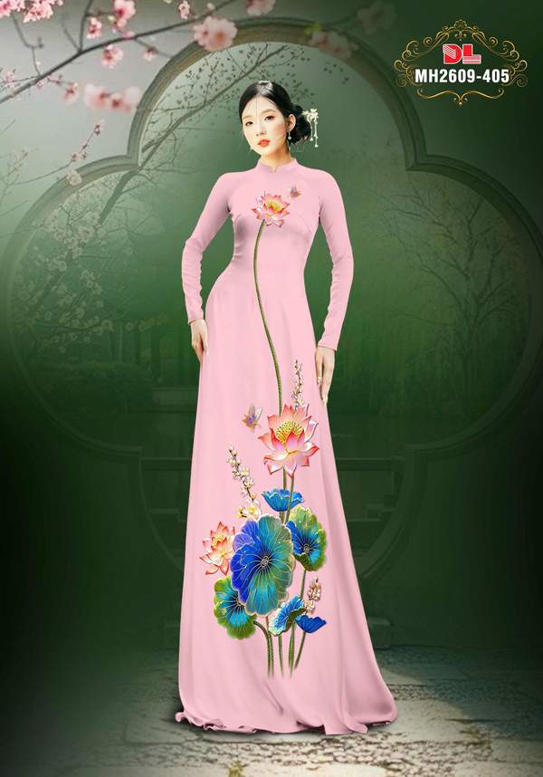 Vải Áo Dài Hoa Sen đẹp hiện nay AD MH2609 nhiều kiểu