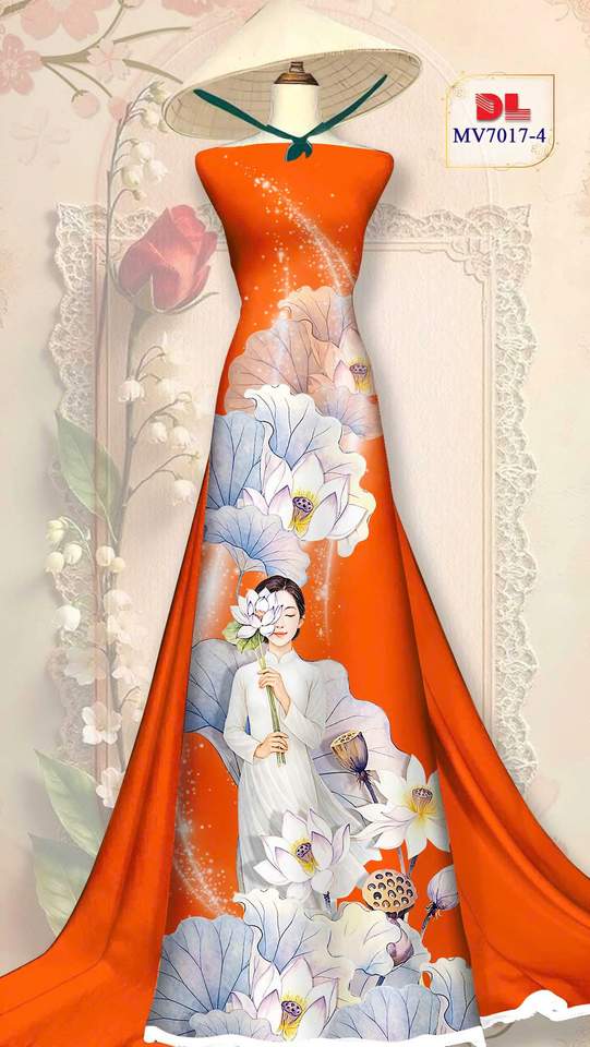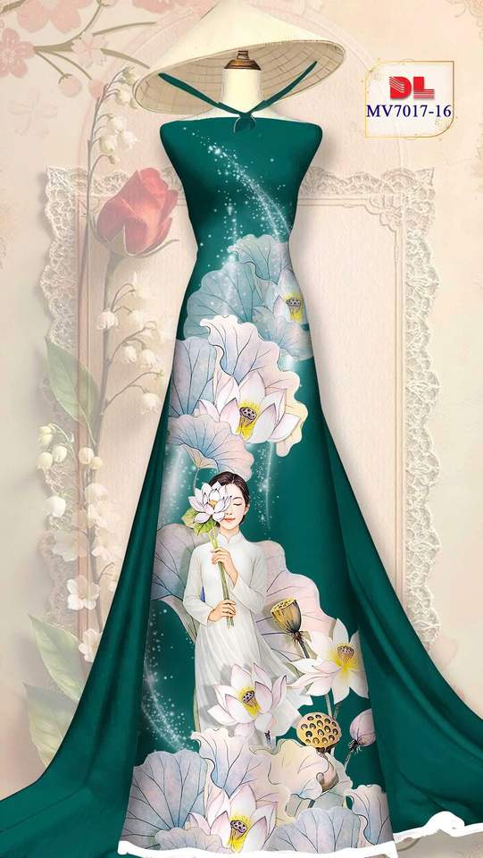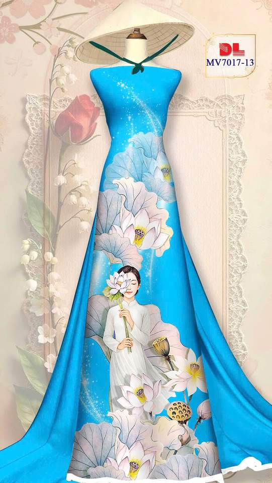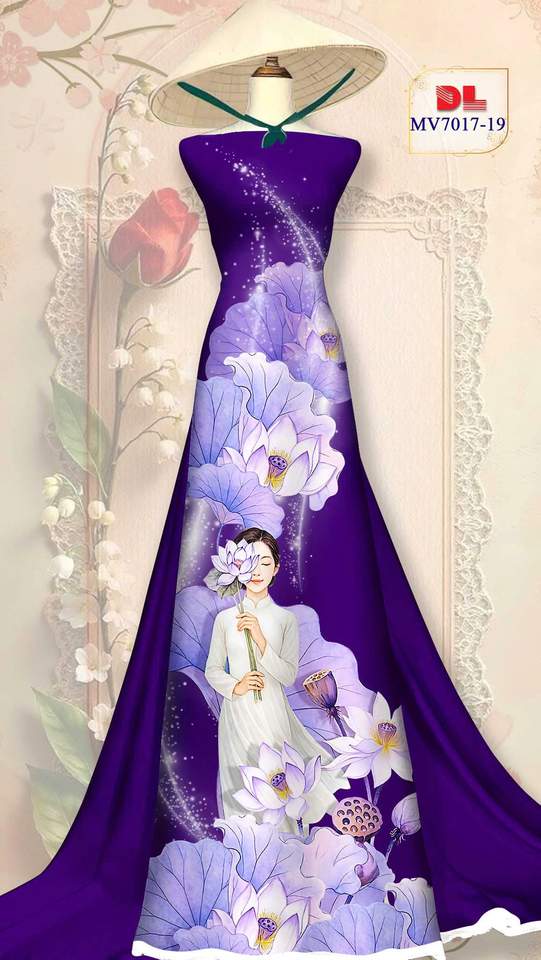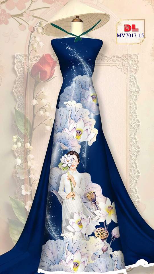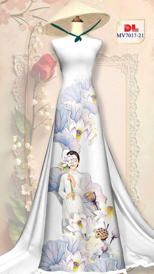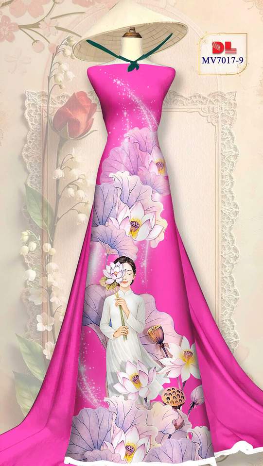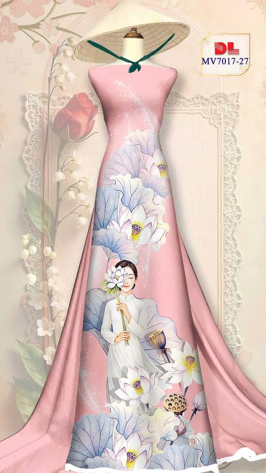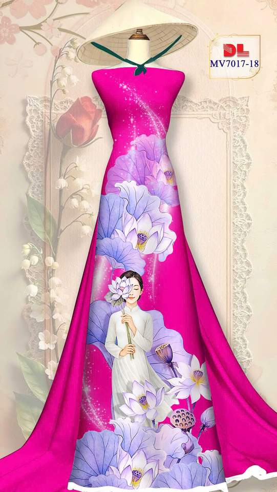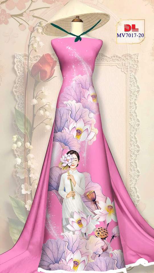 Vải Áo Dài Hoa Sen được yêu thích tháng này AD MV7017 thiết kế mới