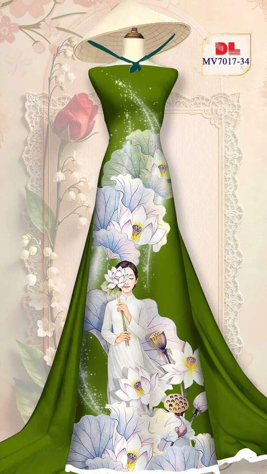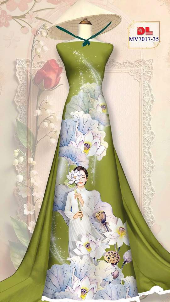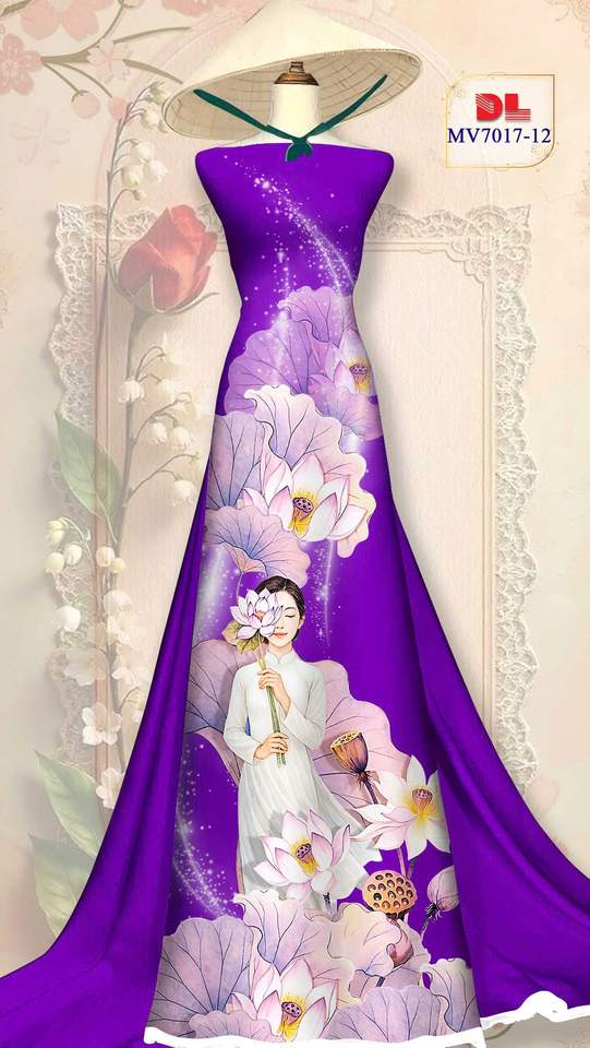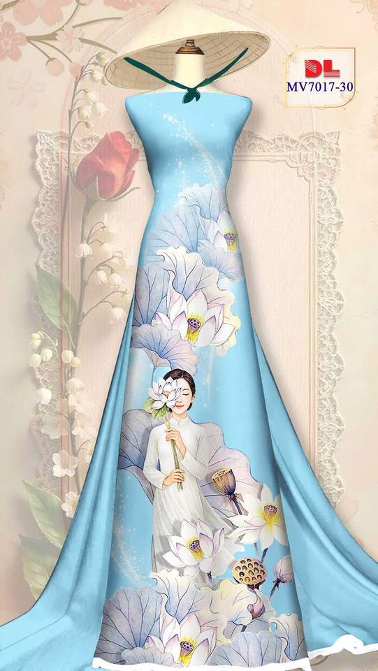 Vải Áo Dài Hoa Sen xem nhiều nhất tuần này AD MV7017 thiết kế mới