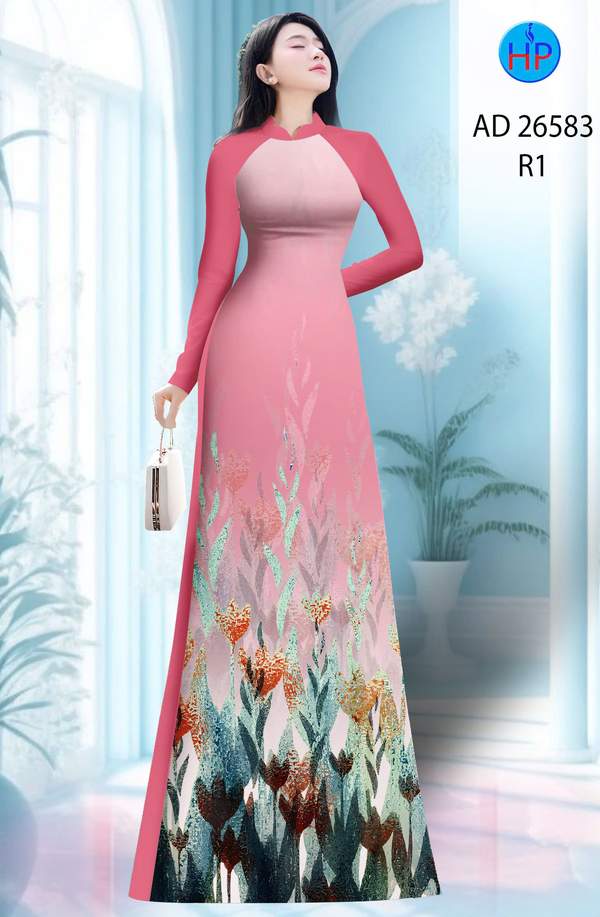 Vải Áo Dài Hoa Tulip nhiều kiểu mới tuần này AD 26583 nhiều kiểu