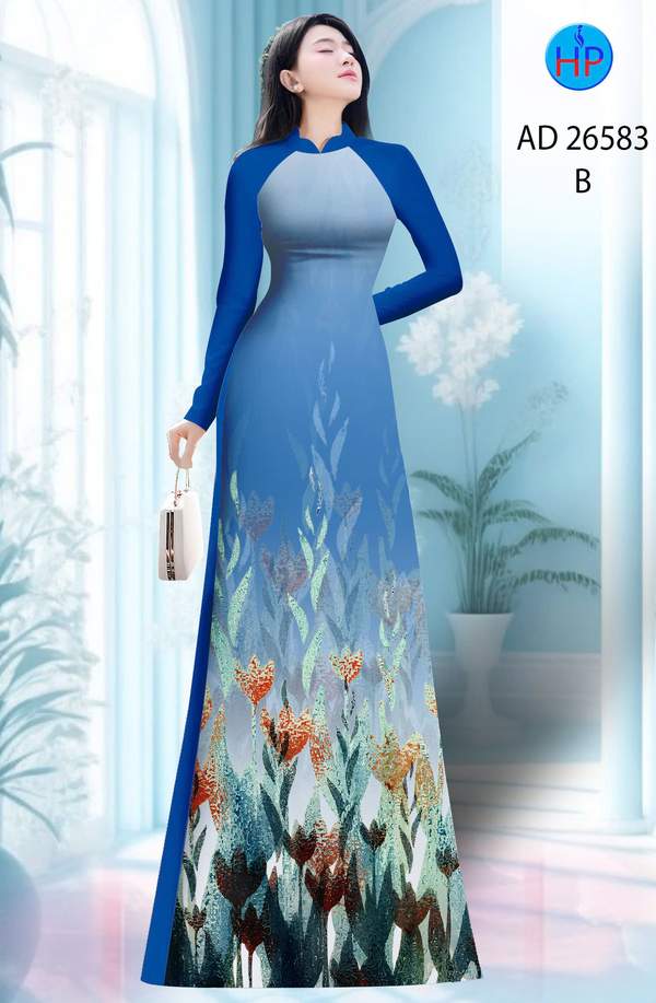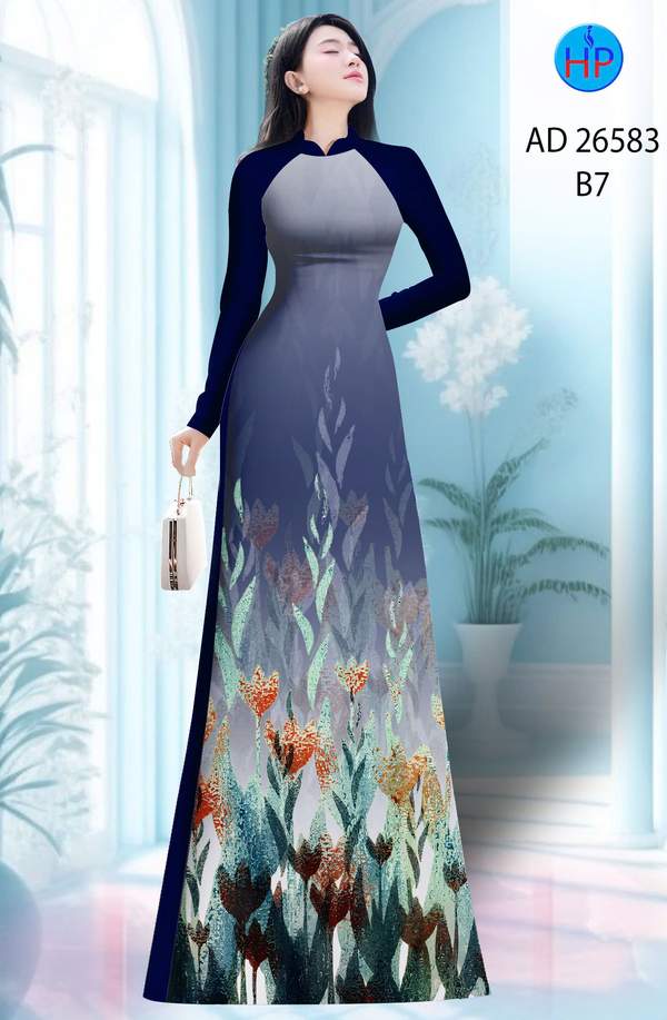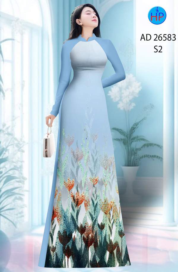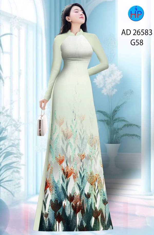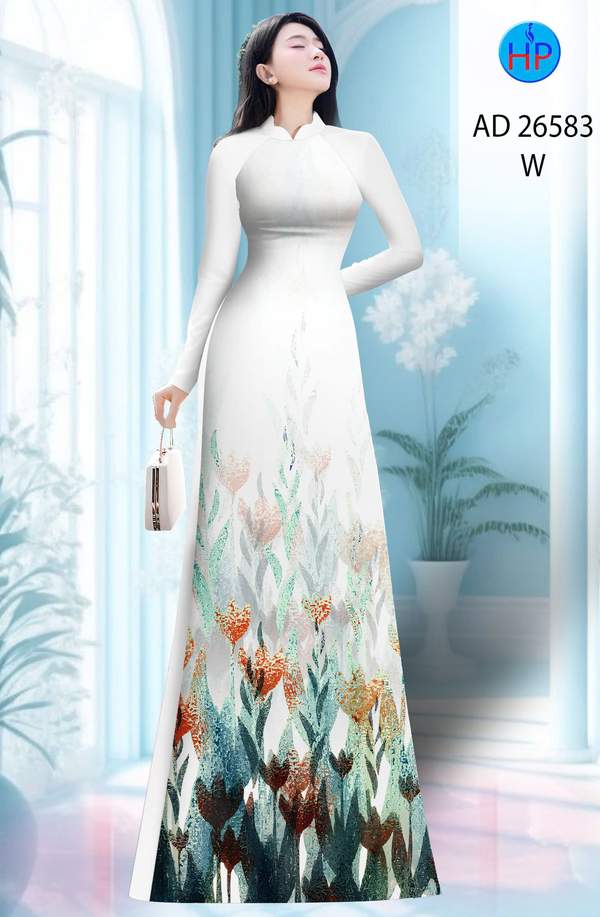 Vải Áo Dài Hoa Tulip nhiều kiểu mới tuần này AD 26583 cổ truyền