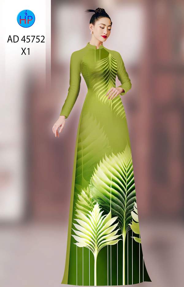 Vải Áo Dài In Lá ưa thích tuần này AD 45752 vừa thiết kế