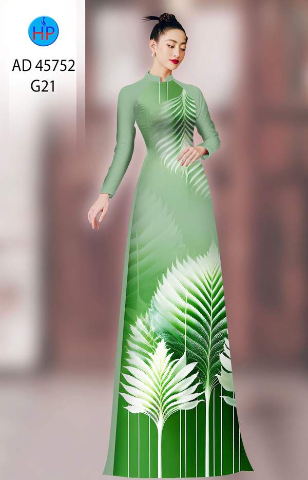 Vải Áo Dài In Lá ưa thích tuần này AD 45752 tôn dáng ngọc