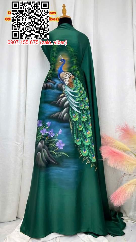 Vải Áo Dài Vẽ Tay Chim Công AD V51098