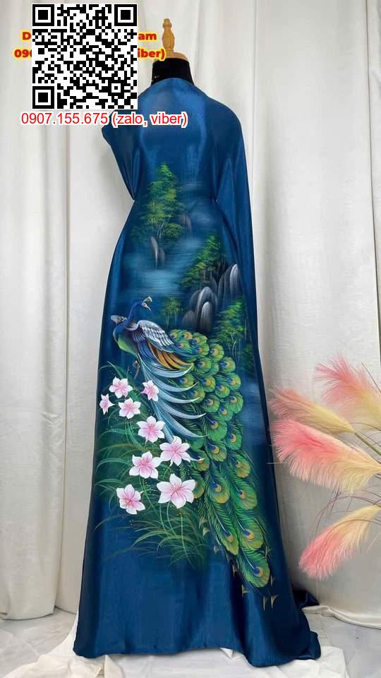 Vải Áo Dài Vẽ Tay Chim Công AD V51124