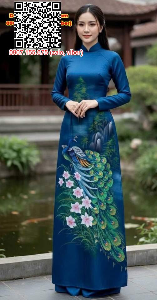Vải Áo Dài Vẽ Tay Chim Công Cao Cấp Hình nhiều kiểu mới tháng này AD V50961