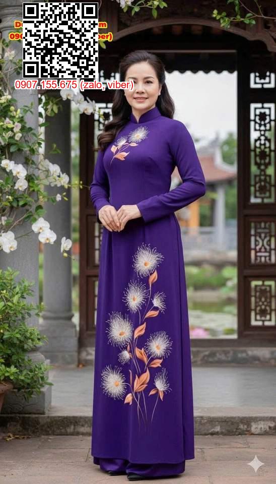 Vải Áo Dài Vẽ Tay Hoa Sang Trọng AD V51140