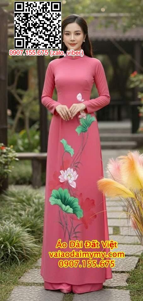 Vải Áo Dài Vẽ Tay Hoa Sen AD V51554