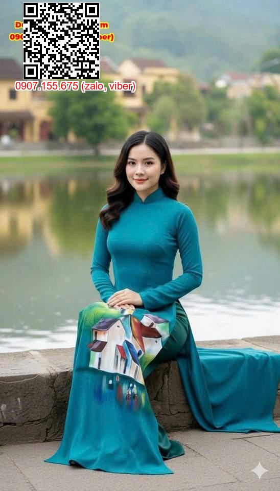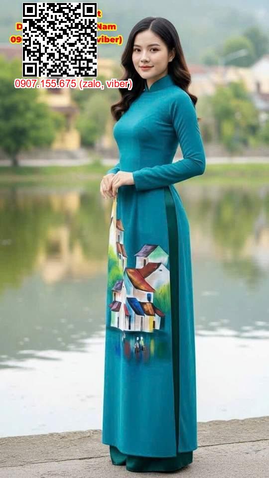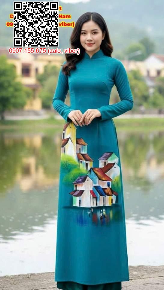 Vải Áo Dài Vẽ Tay Phong Cảnh Cao Cấp Hình nhiều kiểu mới hiện nay AD V50967 cổ truyền Việt Nam