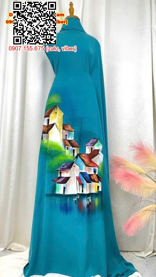 Vải Áo Dài Vẽ Tay Phong Cảnh Cao Cấp Hình ưa chuộng hiện nay AD V50967 nhiều kiểu