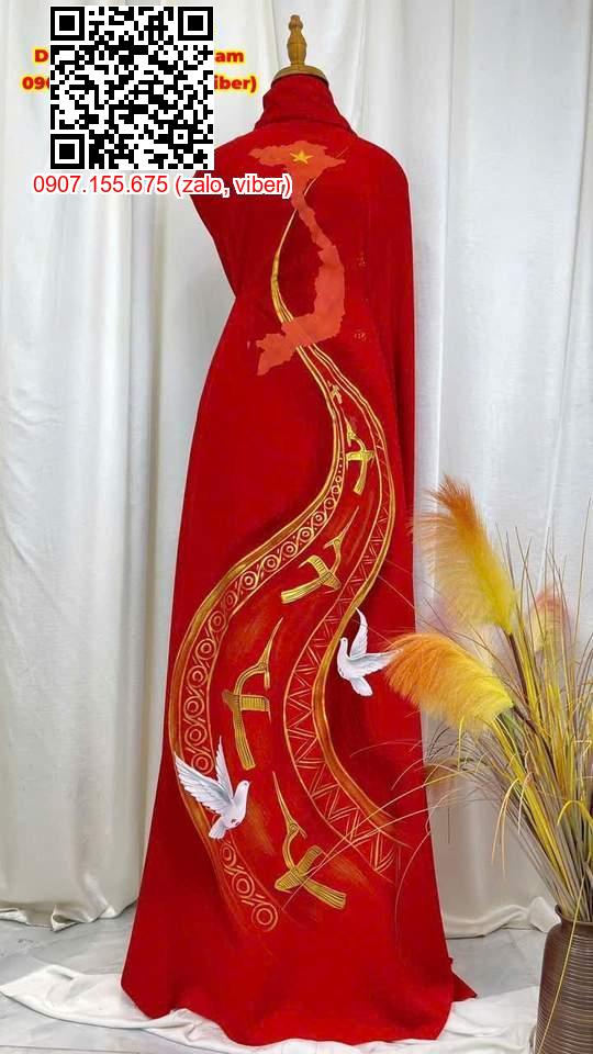 Vải Áo Dài Vẽ Tay Tổ Quốc Việt Nam vừa thiết kế tuần này AD V51144