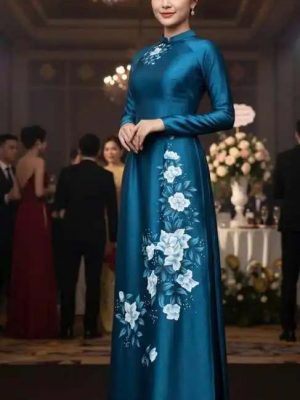 Vải Áo Dài Vẽ Tay Hoa Sang Trọng AD V50972